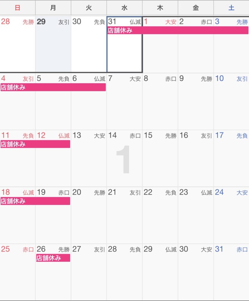1月店舗スケジュール
